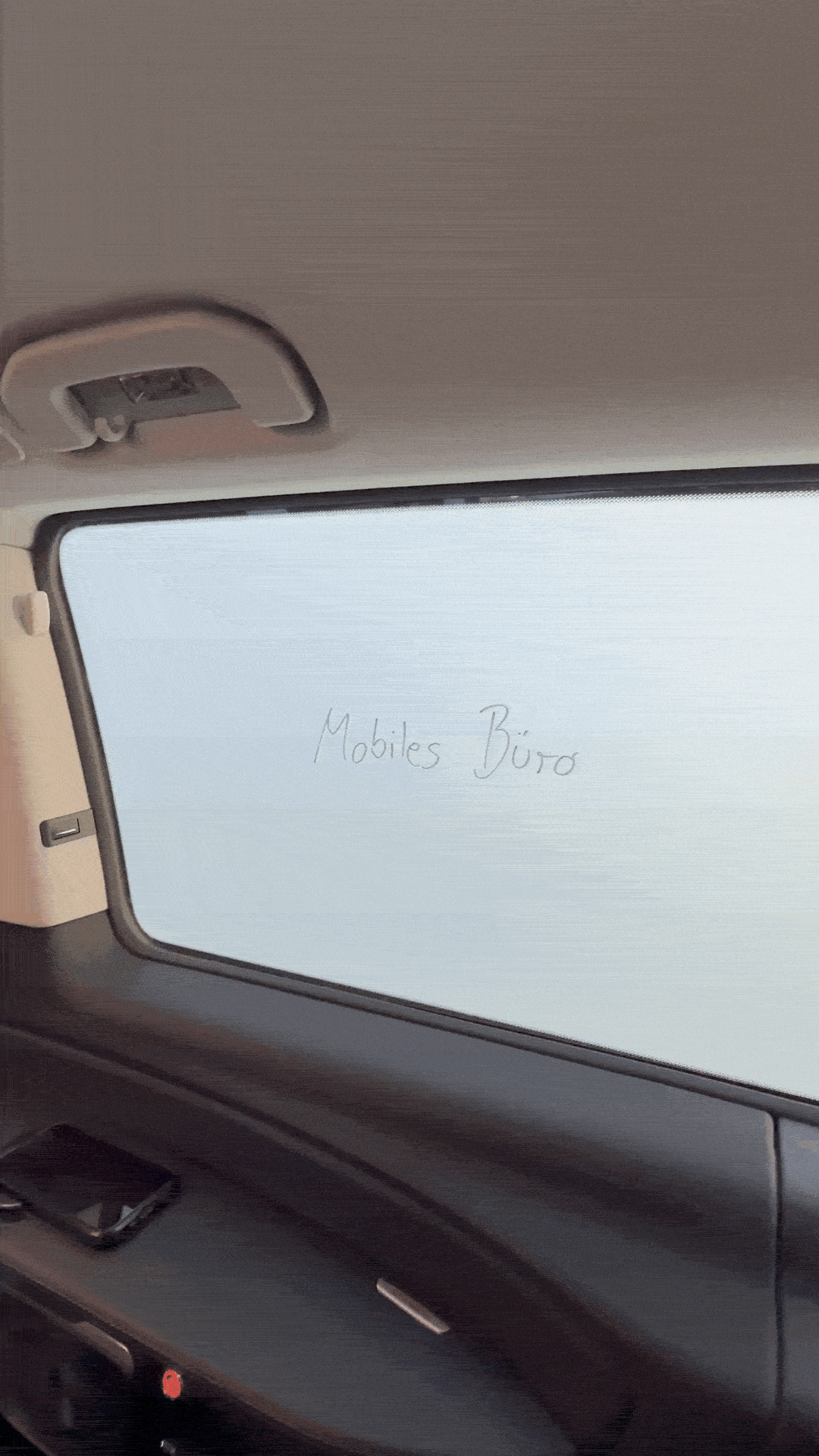 In den Seitentüren integrierte 27-Zoll-Bildschirme sowie ein zusätzlicher Deckenmonitor schaffen eine Arbeitsumgebung, die klassische Bürolösungen nicht vermissen lässt. Ergänzt wird dies durch Whiteboards auf Knopfdruck und einen großzügigen Multifunktionstisch für echte Zusammenarbeit.