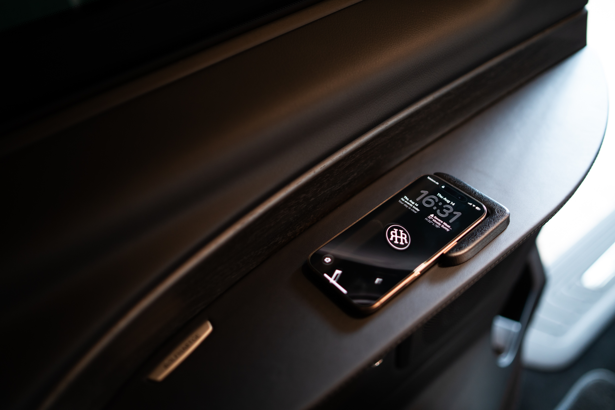 Die eigens entwickelte Mittelkonsole kombiniert Design und Funktionalität. Neben praktischen Ablagen bietet sie unter anderem ein gekühltes Fach für die Versorgung unterwegs – ein Detail, das im Alltag schnell unverzichtbar wird.