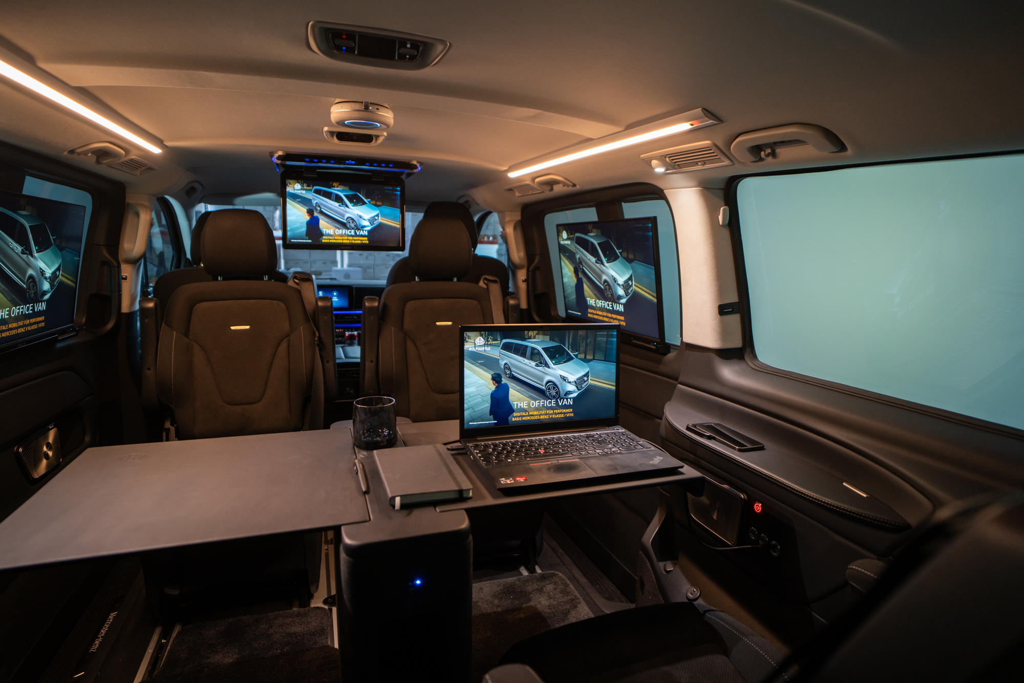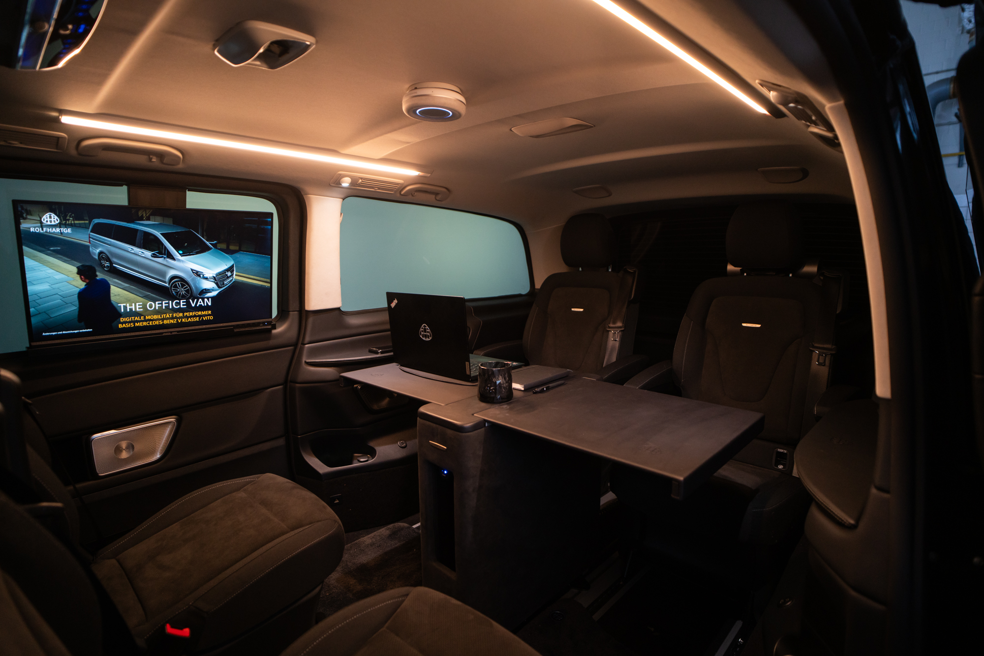 Ein durchdachtes Lichtkonzept aus Deckenspots und Raillights sorgt zusätzlich für optimale Arbeitsbedingungen – unabhängig von Tageszeit oder Standort. Gleichzeitig integriert sich die Technik dezent in das Gesamtbild der Mercedes-Benz V-Klasse.
